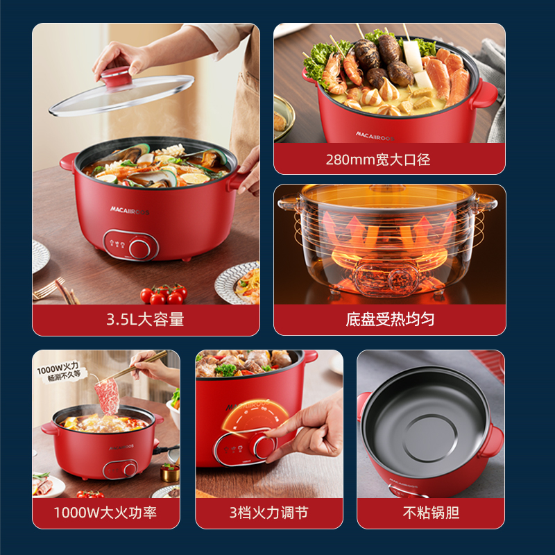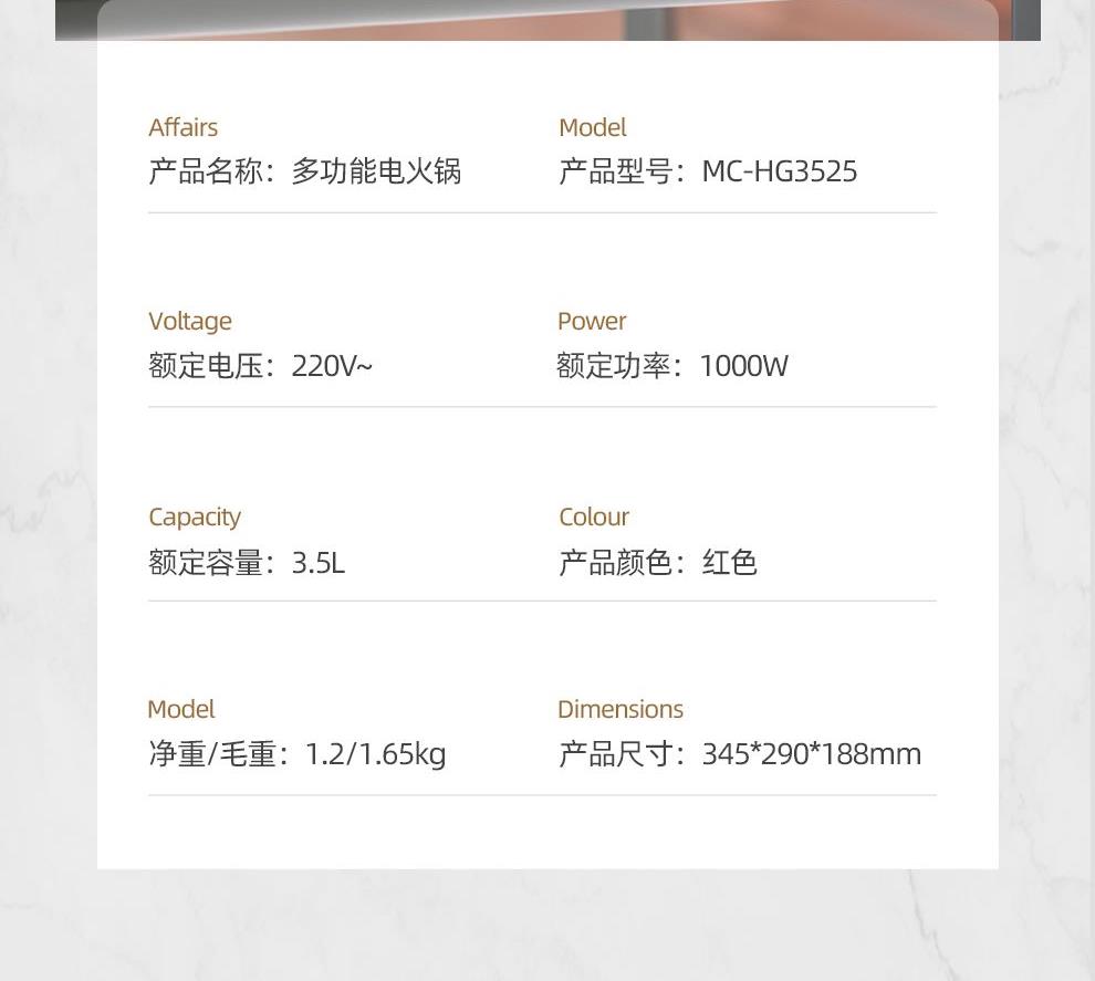 美國邁卡羅多功能電火鍋MC-HG3525 美國邁卡羅多功能電火鍋MC-HG3525