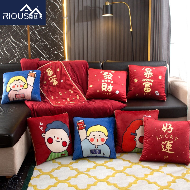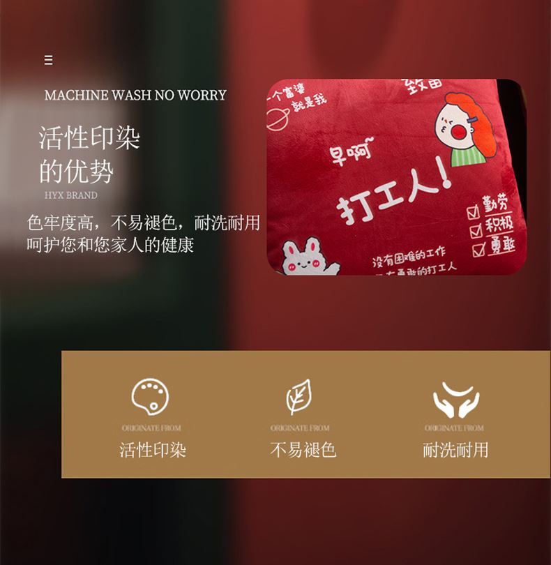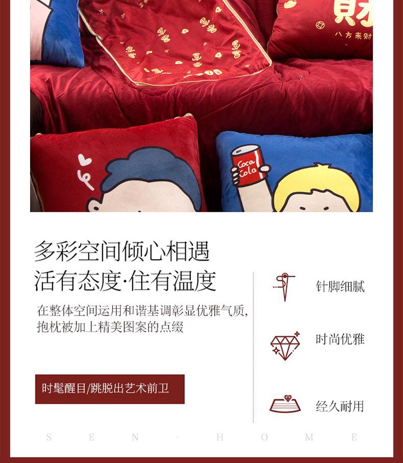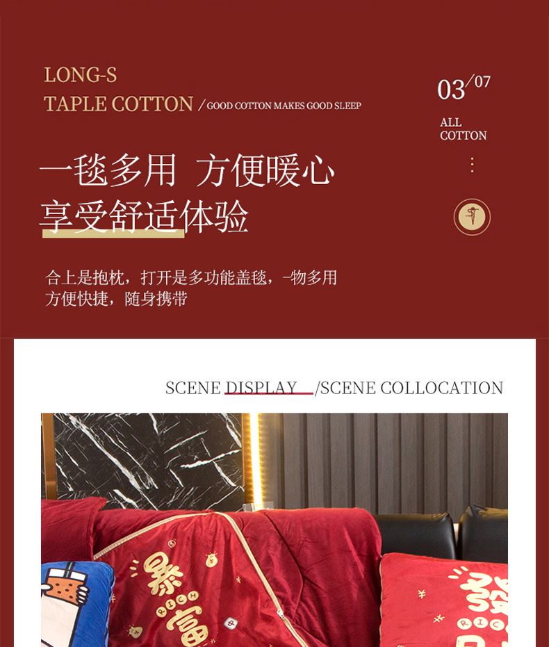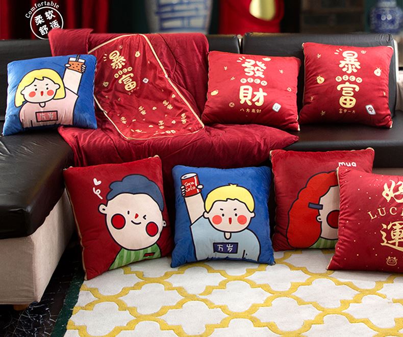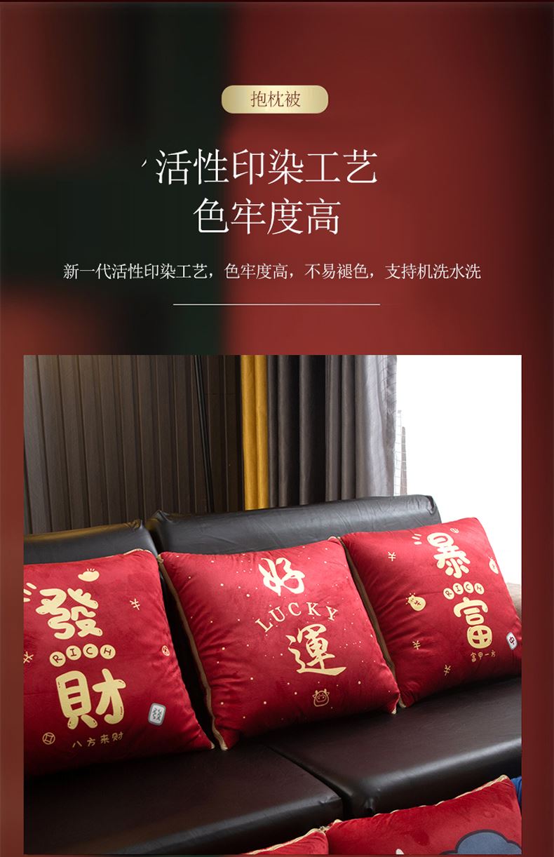花色:好運連連/可愛男孩/可愛女孩/元氣男孩/元氣女孩/招財進寶 規格:折疊40*40cm展開100*150cm 面料:水晶絨(聚酯纖維) 填充:聚酯纖維 甄選水晶絨面料,柔軟舒適,吸濕透氣;合上是抱枕,打開是多功能蓋毯,一物多用,方便快捷,隨身攜帶;活性印染工藝,色牢度高,不易褪色,不懼機洗水洗;絎縫工藝,固定內芯,不易泡棉;金屬拉鏈設計,順滑易拉,不易卡殼。