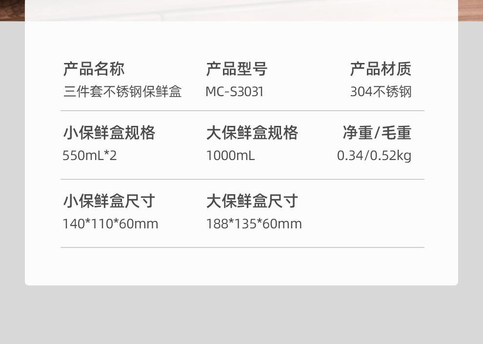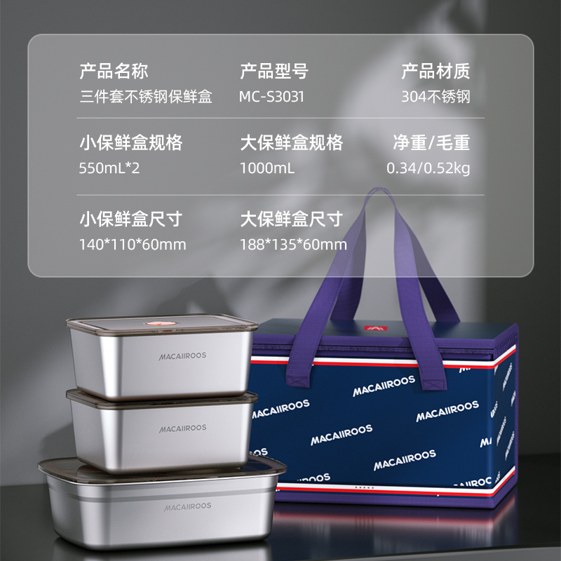 美國邁卡羅三件套不銹鋼保鮮盒MC-S3031