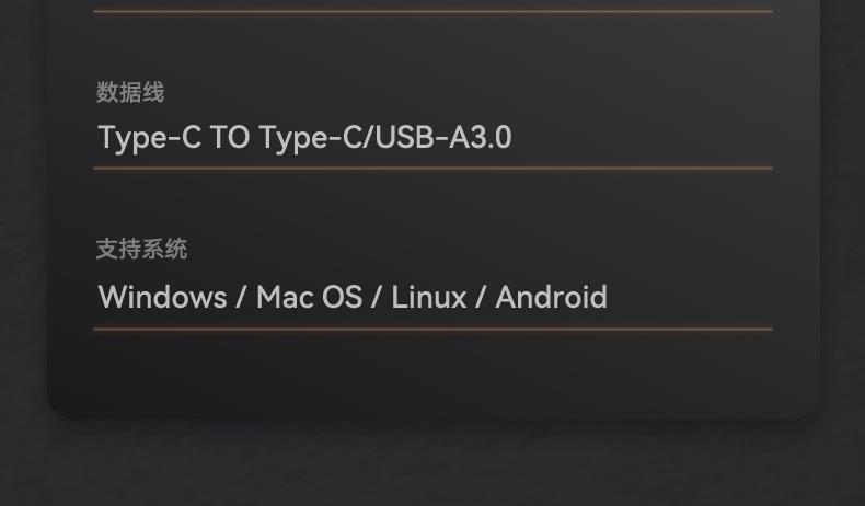 傳輸速率:NGff協議5Gbps速度:400MB/S寫入速度 /450MB/S(讀取速度)數據線:Type-C TO Type-C/USB-A3.0(內附數據線)