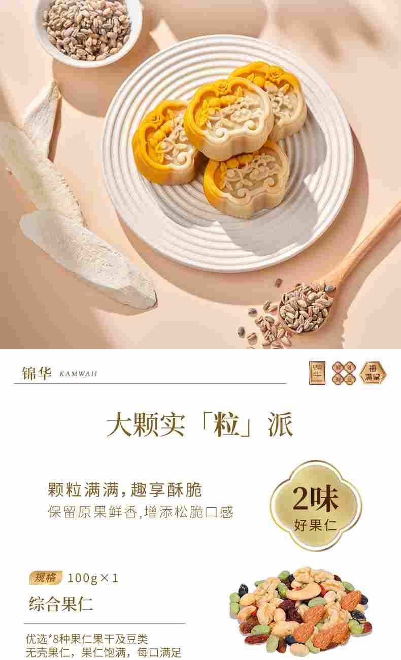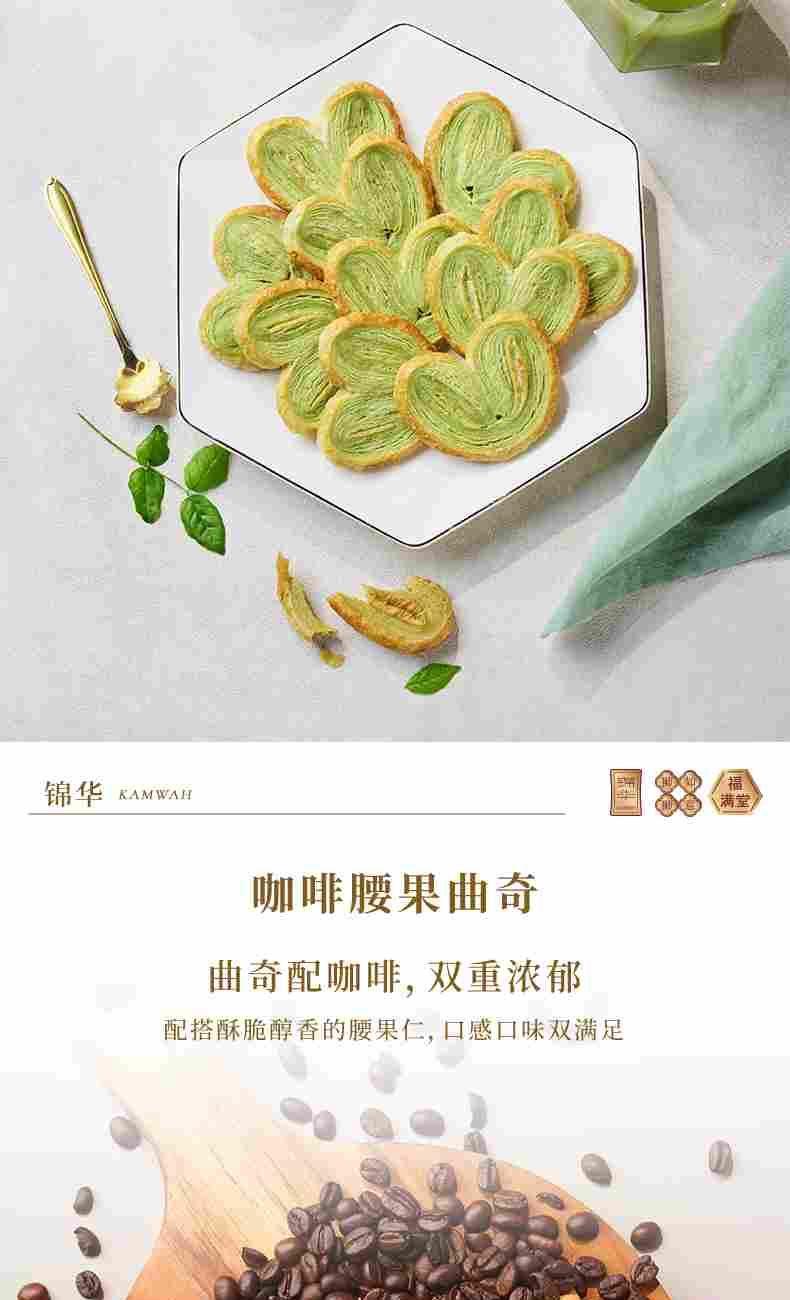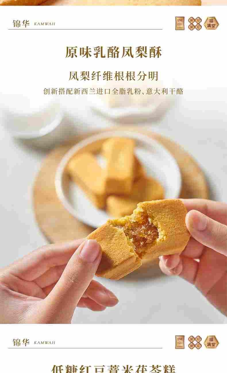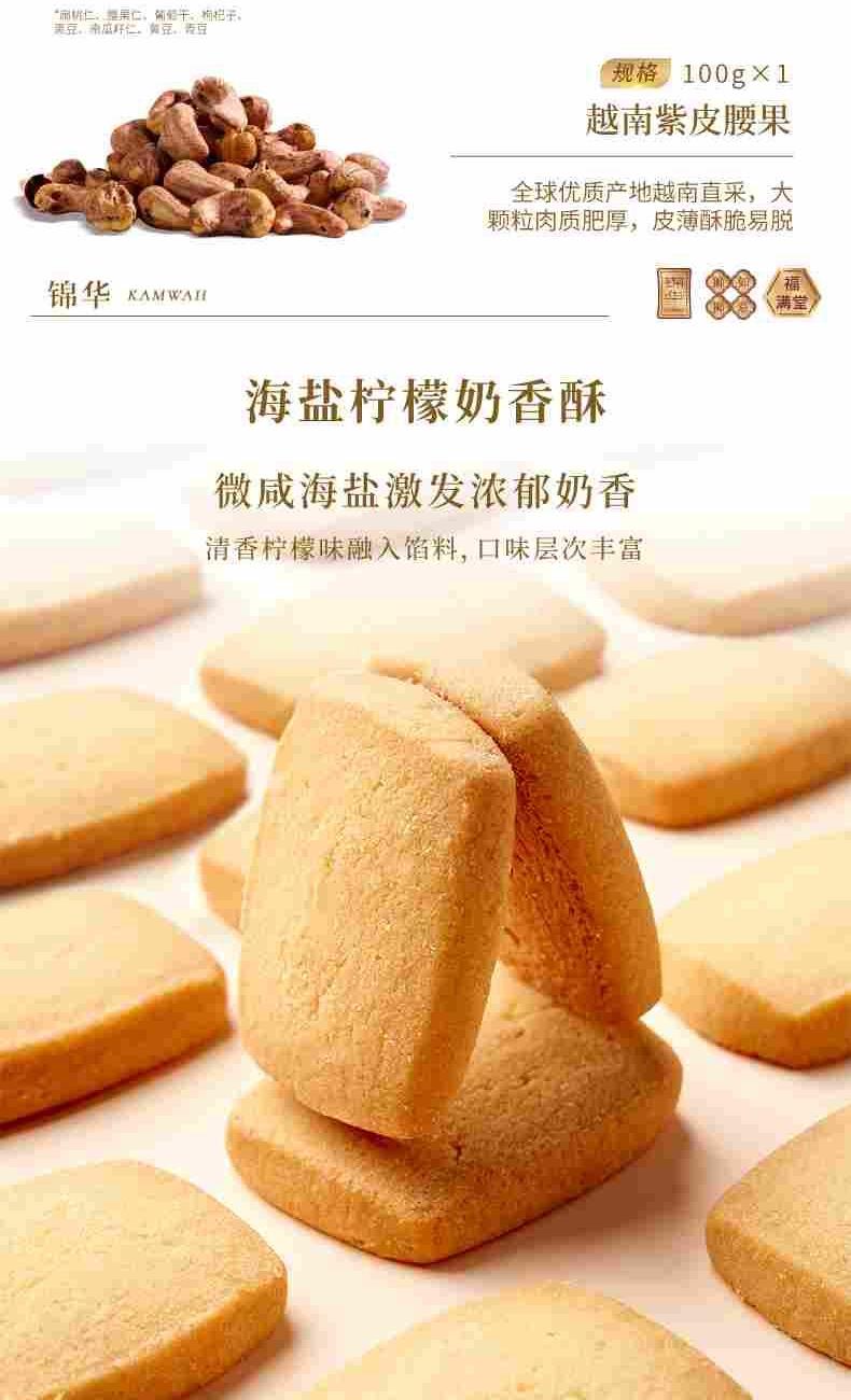 錦華瑞獅納吉 凈含量:902克 紫皮腰果100克*1 綜合果仁(果仁干果混合制品)100克*1 抹茶蝴蝶酥(餅干)10克*8 咖啡腰果曲奇(餅干)12克*12 低糖黑枸杞腰果糕50克*1 低糖紅豆薏米茯苓糕50克*1 低糖青稞山藥糕50克*1 原味乳酪鳳梨酥(糕點)30克*6 海鹽檸檬奶香酥(餅干)10克*7 濃香黑芝麻西餅(餅干)13克*6
