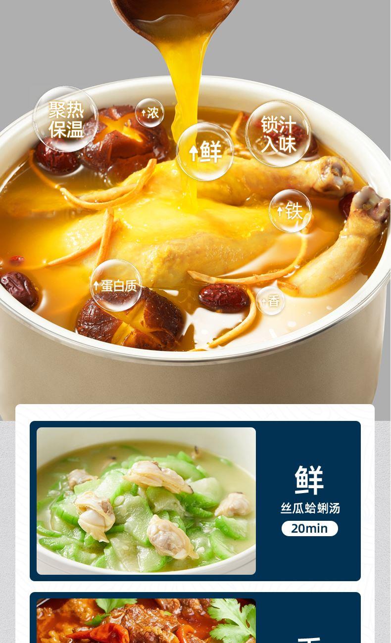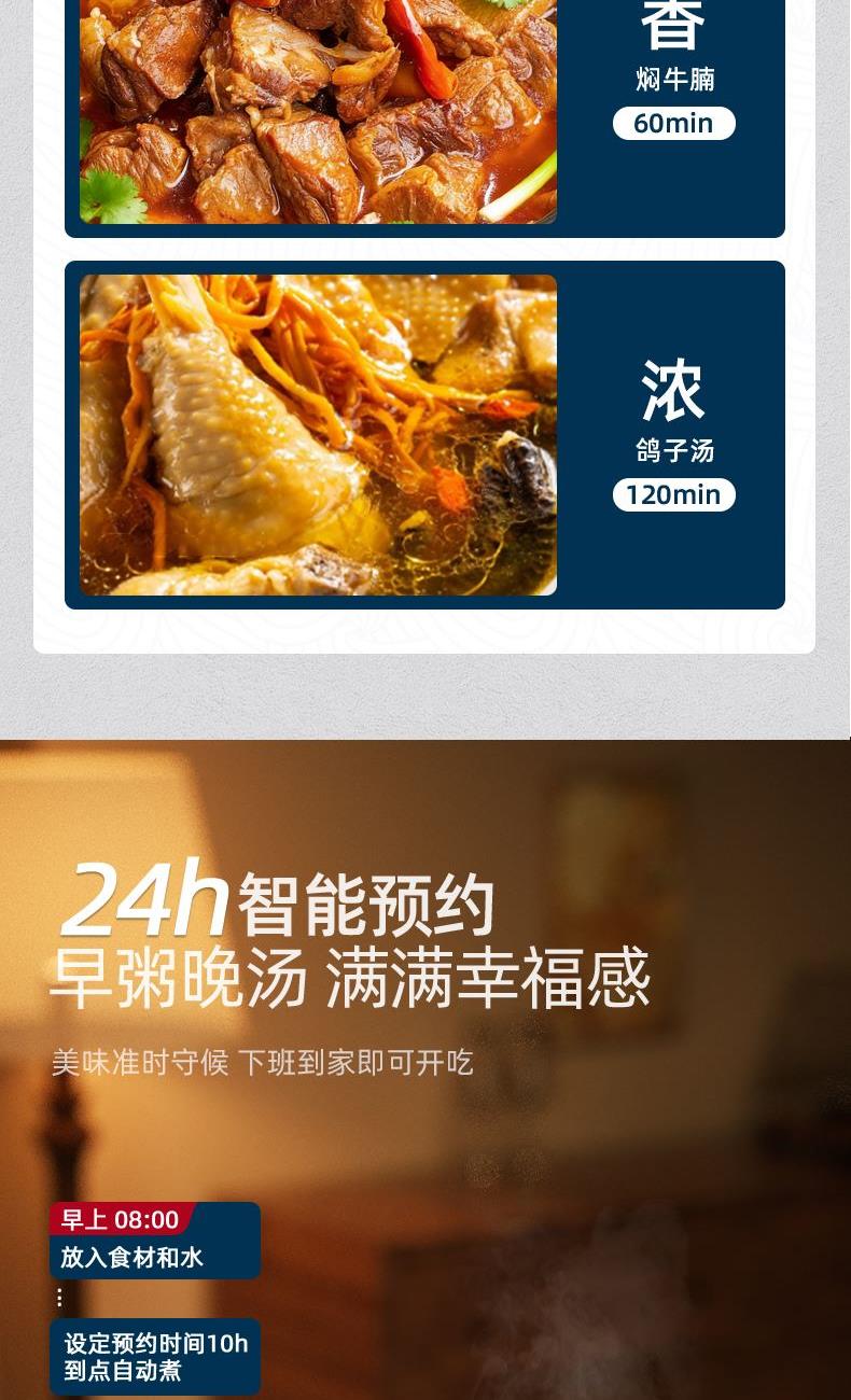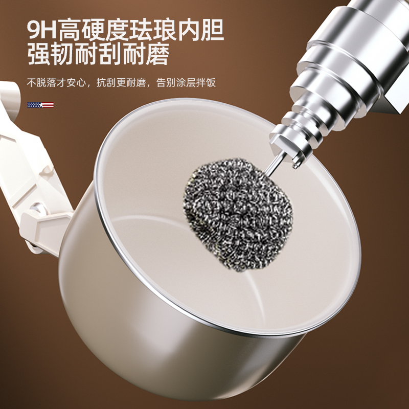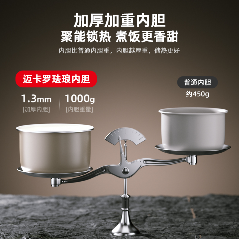 額定功率:700W 額定容量:4.0L 額定電壓:220V~ 額定頻率:50Hz 產(chǎn)品凈重:2.90kg 產(chǎn)品毛重:3.15kg 整箱重量:20.3kg 裝 箱 數(shù):6臺/箱 琺瑯內(nèi)膽0氟0分解加厚琺瑯內(nèi)膽,傳熱均勻,易清潔 智能烹煮6大核心菜單,24h智能預約,長效保溫; 觸控彩屏面板,四位數(shù)碼顯示,智能程序控制; 控溫&便捷提手波浪紋發(fā)熱盤,傳感器控溫;便捷提手易提拿。